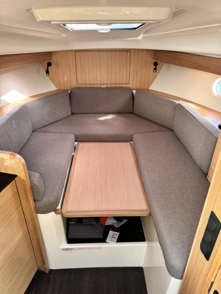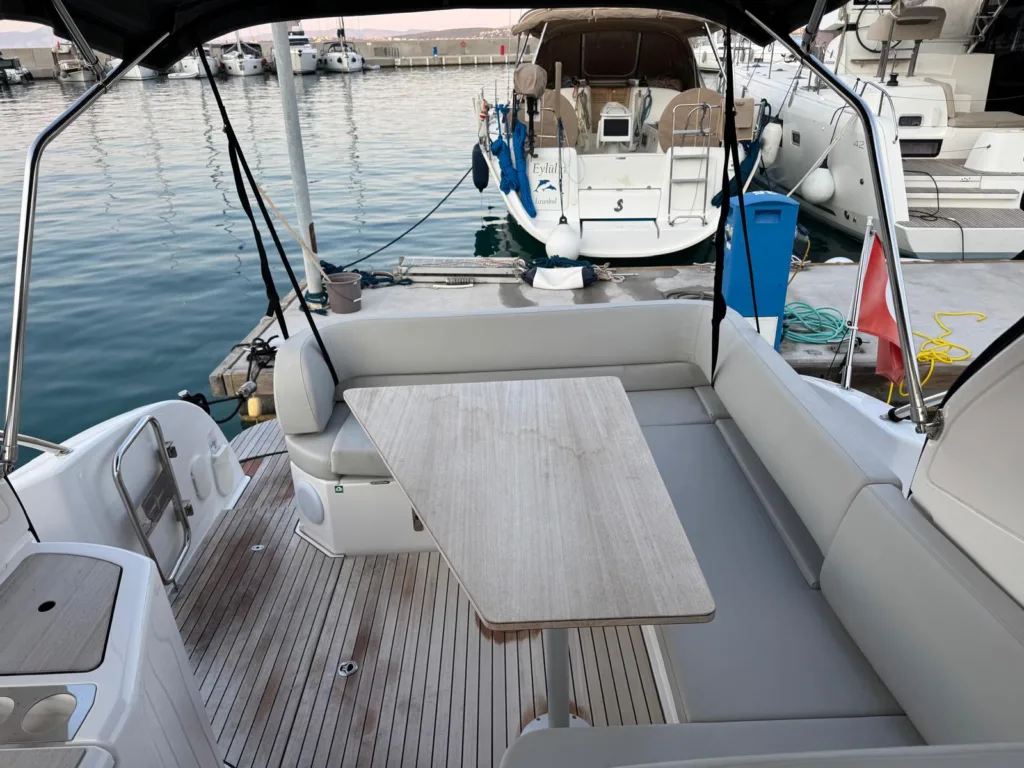 Alçaltılabilir ve güneşlenme alanına dönüşebilen kokpit masası ve döşemeleri stone